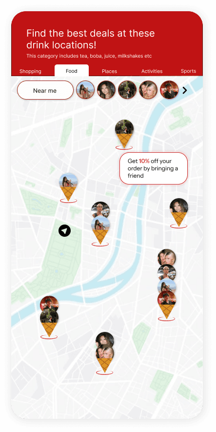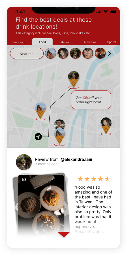 A lifestyle layer within the FET app connecting users to trusted reviews, discounts, and social exploration — making telecom part of daily life.